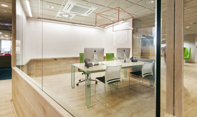 3、小空間辦公室裝修不能選用大面積的鮮亮的暖色調(diào)。因?yàn)榕{(diào)能在視覺上使距離拉近。裝修設(shè)計(jì)時(shí),應(yīng)以大面積的中性色或冷調(diào)為主,點(diǎn)綴暖色調(diào)加以調(diào)和。比如令墻角地?zé)舭l(fā)暖色光。
